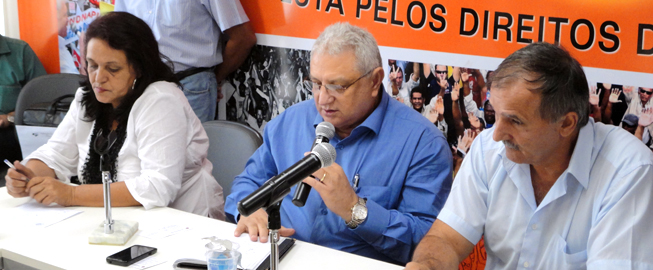 Cristina, da Força Sindical; deputado Ramalho; e o nosso presidente Aires Ribeiro durante encontro