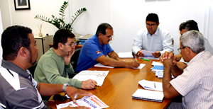 | Nossos diretores Aires, Toninho Forti e Almeida durante negociação com a administração municipal |