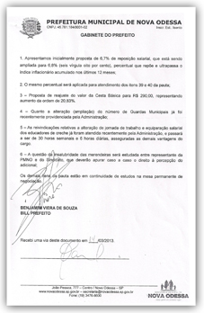 | Em mais uma rodada de negociação para debater as reivindicações dos Servidores de Nova Odessa, com a presença do nosso presidente Aires Ribeiro, a prefeitura apresentou, dia 13 de março, nova proposta para o Sindicato.