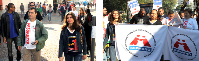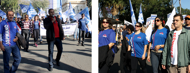 | Os manifestantes caminharam até a avenida doutor Antonio Lobo, local da concentração. Além dos dirigentes e Servidores do SSPMANO participaram trabalhadores ligados aos Sindicatos da borracha, vestuário, químicos, transportes, comércio, farmácias, jornalistas, têxteis e agentes autônomos. Entidades como a UNE, Asta, Facesp e Pula Catraca também marcaram presença.