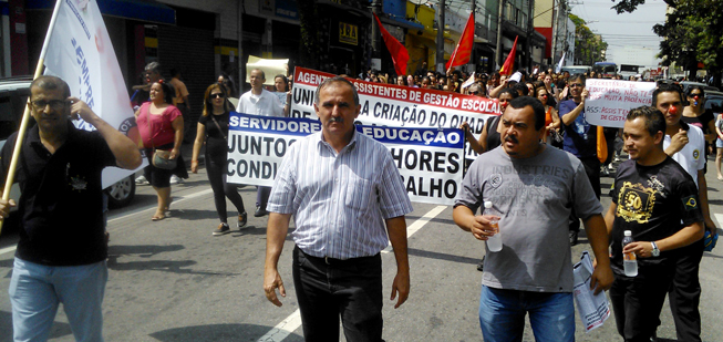 | Nosso presidente Aires Ribeiro, que também é o líder máximo da Fesspmesp (Federação dos Sindicatos dos Servidores do Estado de São Paulo) esteve recentemente em Guarulhos. Na ocasião, ele foi levar o apoio ao protesto dos Educadores da cidade, que reuniu mais de 500 pessoas.