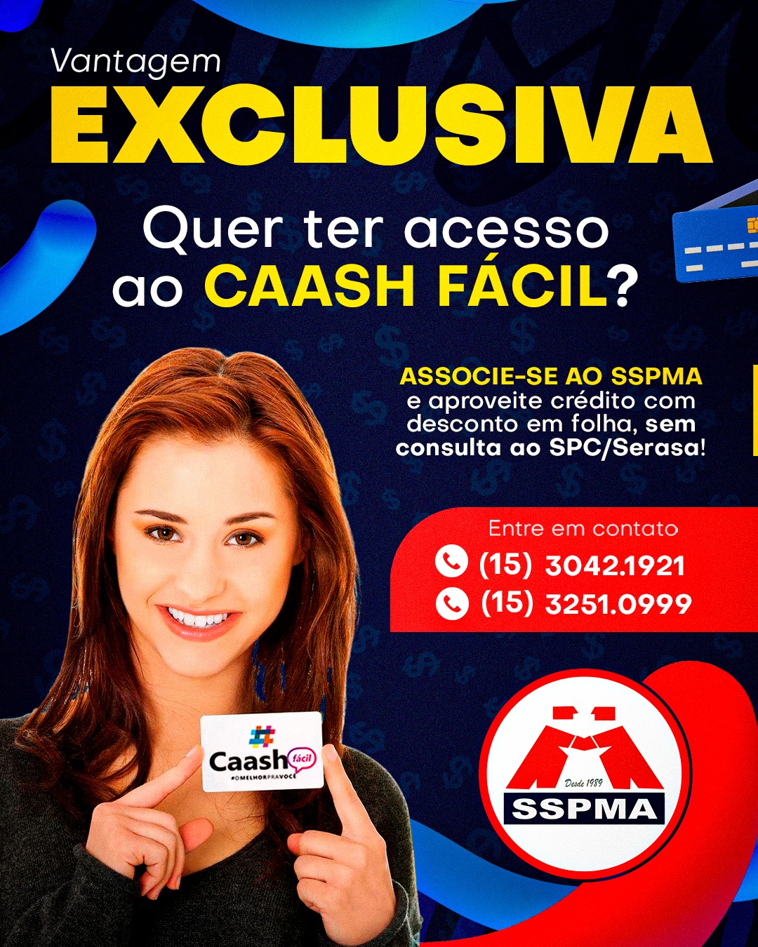 Caash Fácil | Associe-se ao SSPMA e aproveite crédito com desconto em folha, sem consulta ao SPC/Serasa!